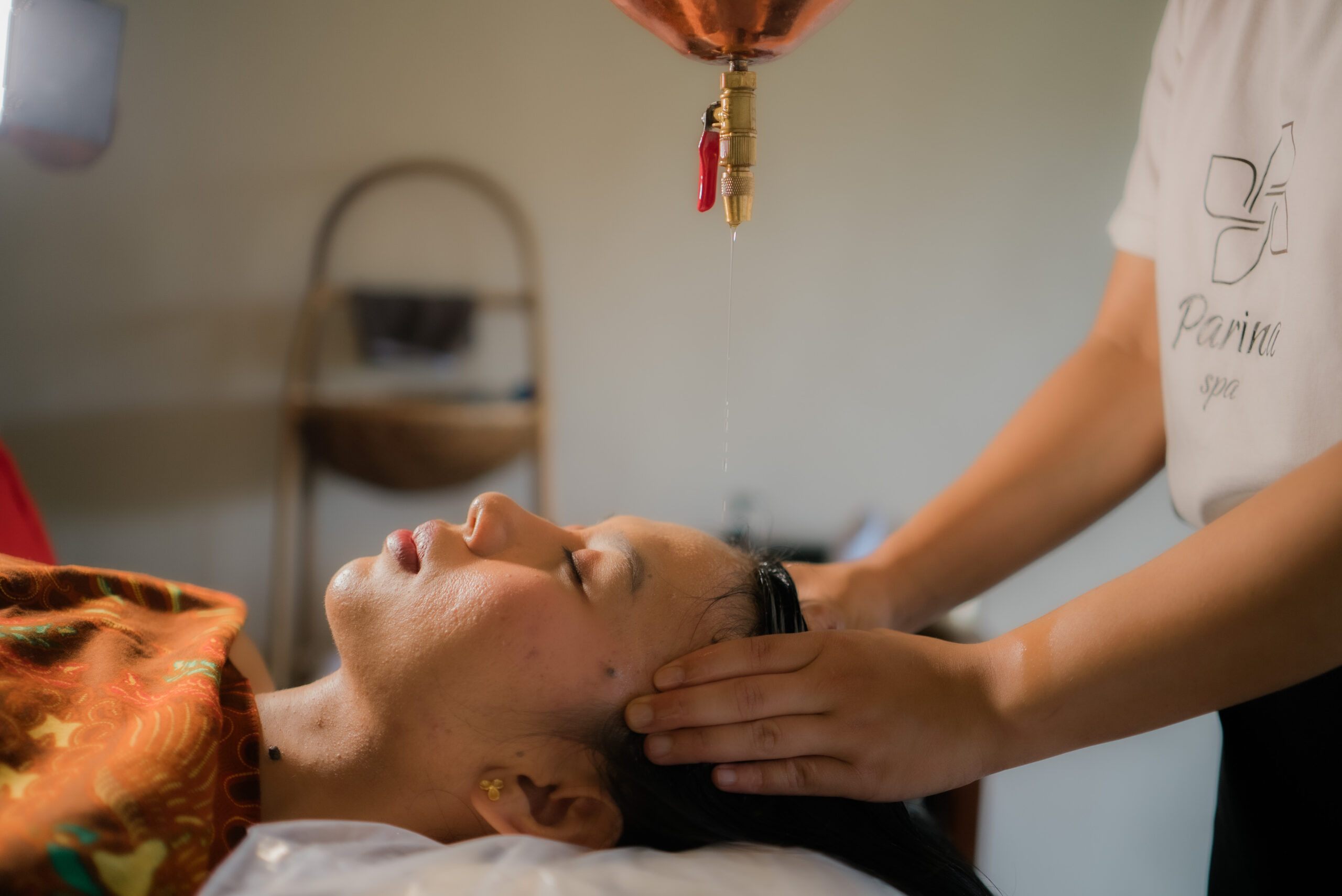 An ancient Ayurvedic therapy where a continuous stream of warm herbal oil is gently poured over the forehead (the third eye). This deeply meditative treatment