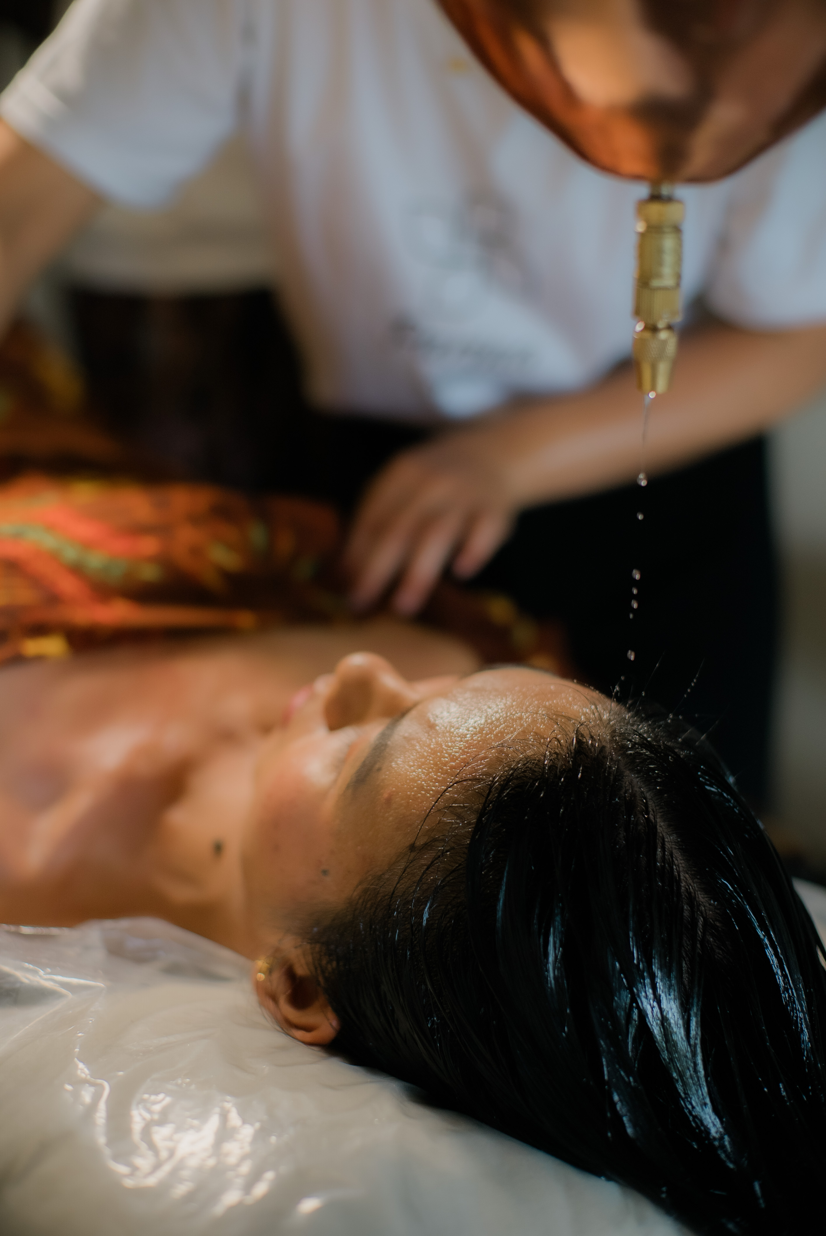A traditional treatment from Bali and India that gently drips warm oil onto the forehead. Shirodhara is highly effective in calming the mind, enhancing concentration, and reducing excessive stress. The rhythmic oil flow creates deep relaxation, soothes the nervous system, and helps balance the body’s energy and mental state.